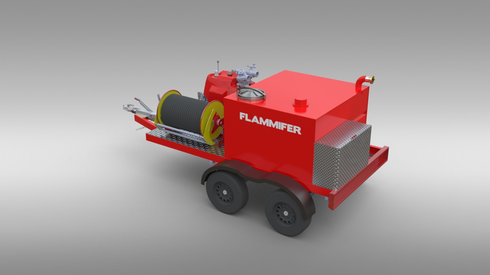 • Flammifer FF T – 1000 industrijska je prikolica s 2 osovine i vatrogasnom pumpom sa spremnikom za pjenu i vitlom za crijevo