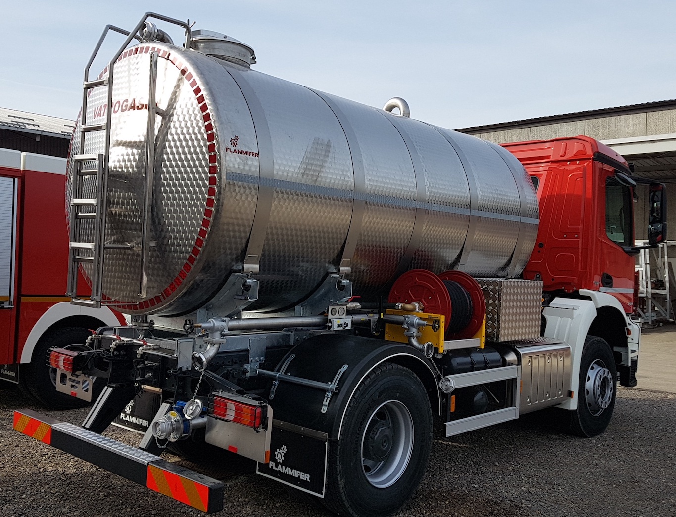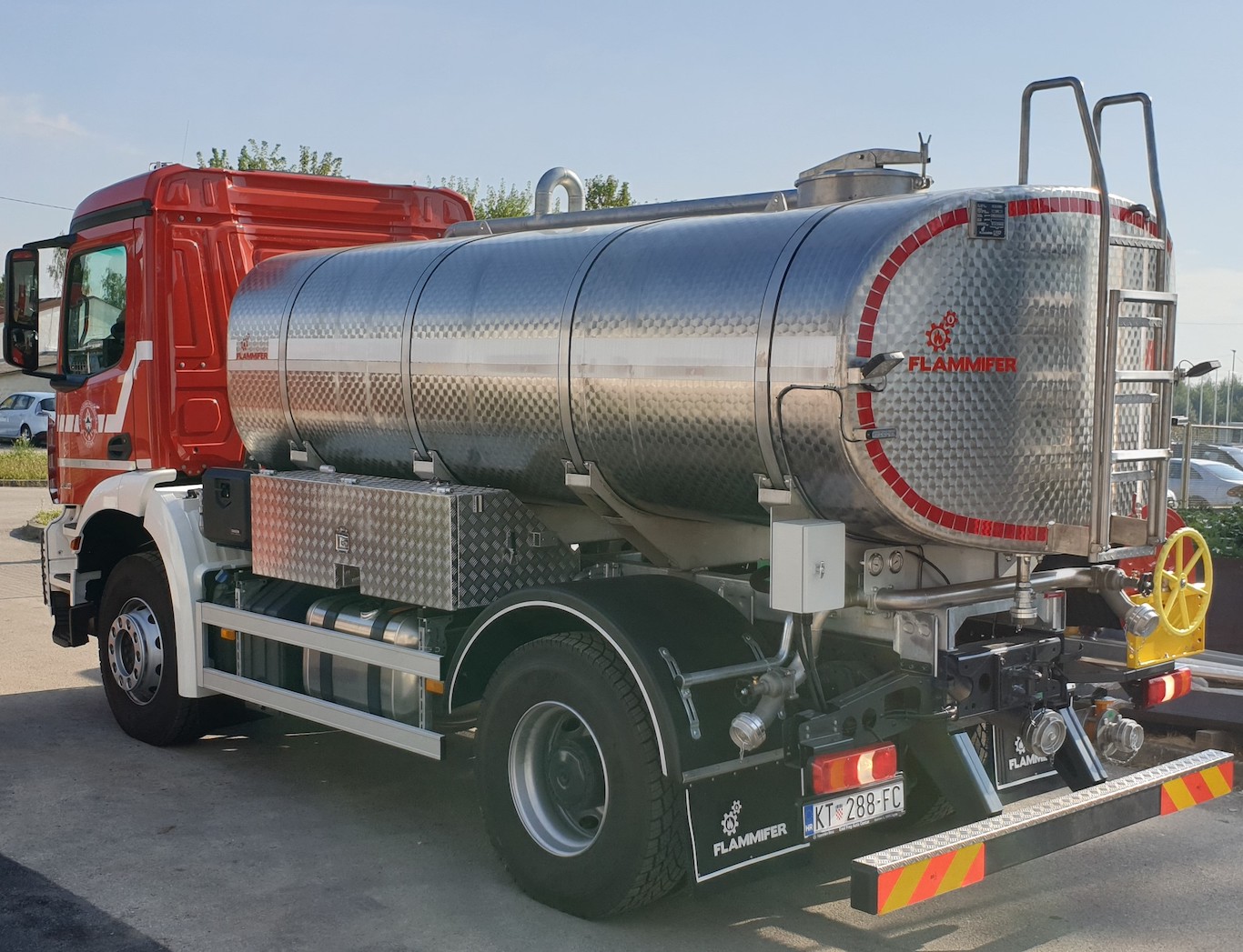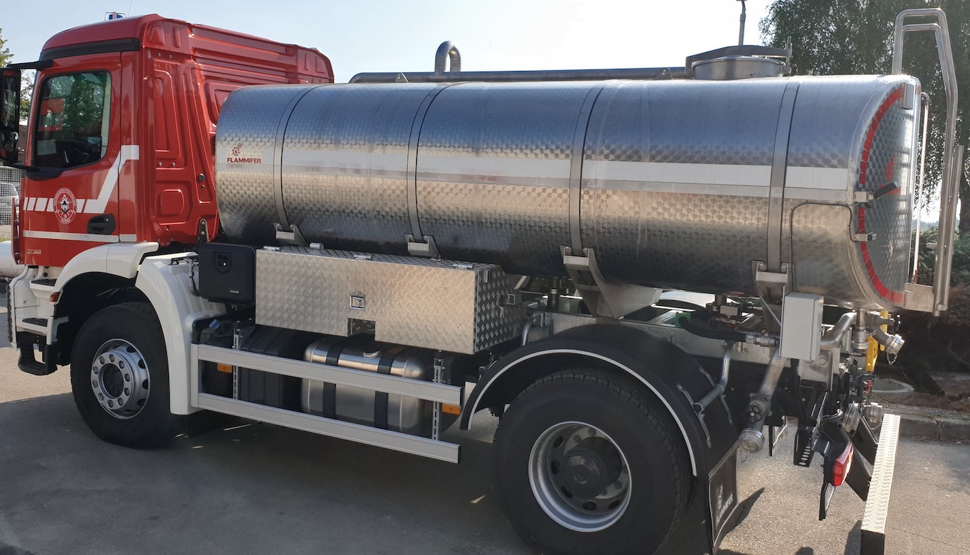 • Flammifer FF AC 8000/10 000 is a tanker truck for drinking water transport either as a support firefighting vehicle or a utility vehicle for drinking water distribution