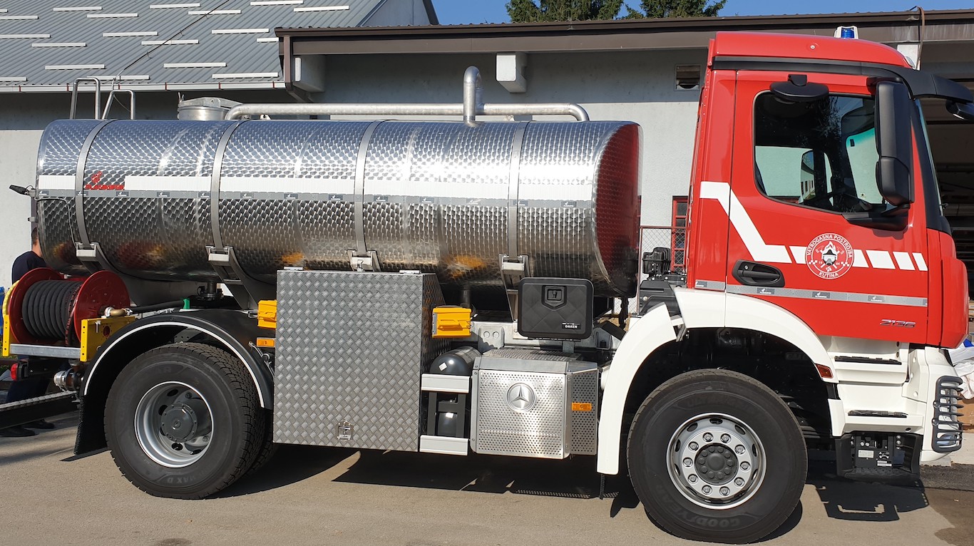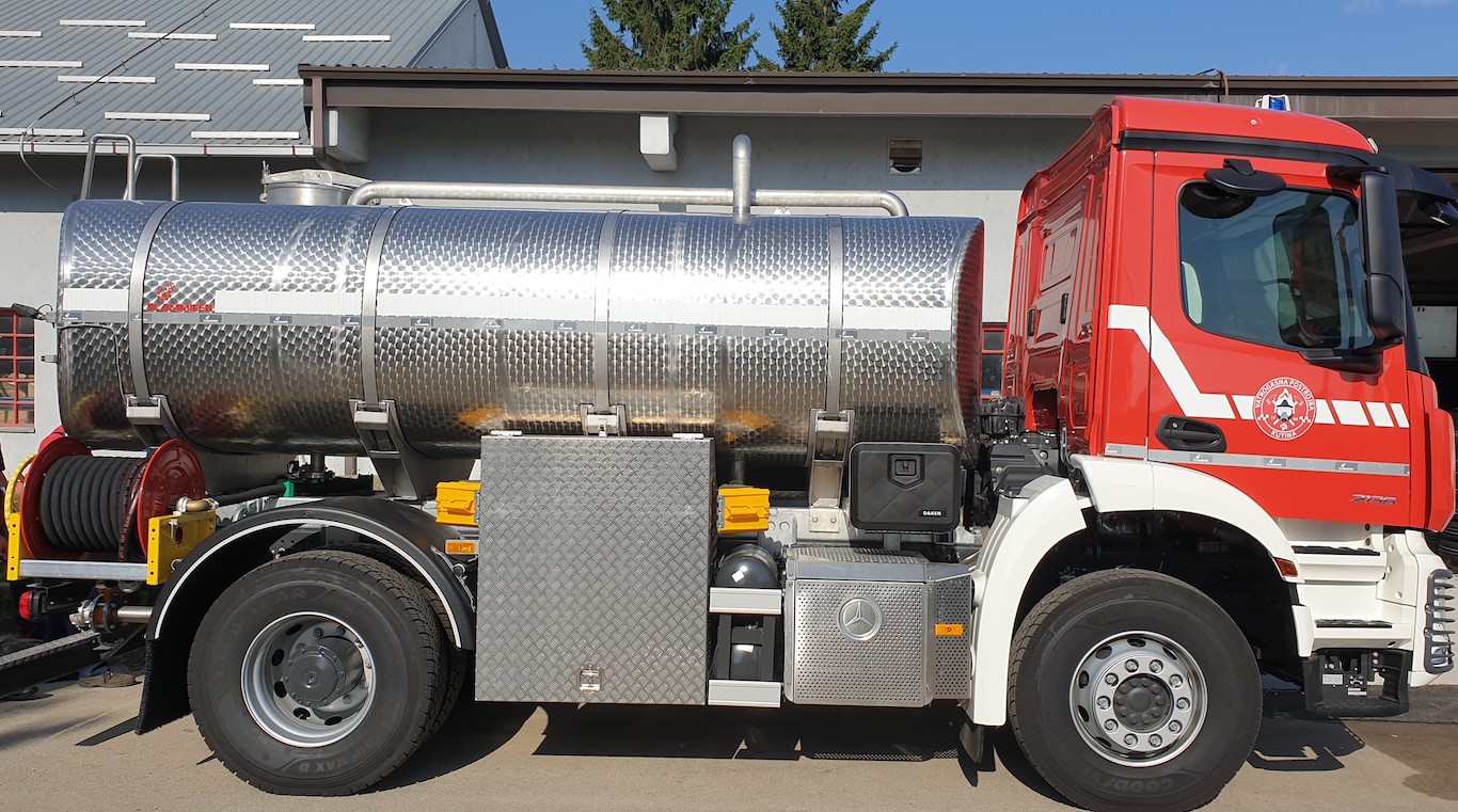 • Tank capacity is 8.000 or 10.000 litres. It is equipped with a pump for water flow 1.000-3.000 l7min at 10 bar pressure